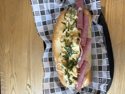 Pastrami, Swiss Cheese, Sauerkraut & Dijon Mayo.